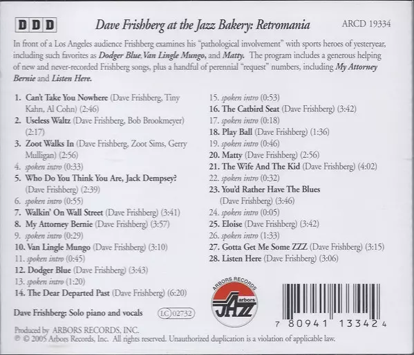| Tytuł | Dave Frishberg At The Jazz Bakery: Retromania |