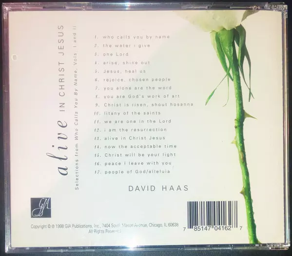 David Haas: Alive In Christ Jesus Wersja na CD w standardowe wydanie. Ta konkretna edycja została wydana w USA w wydawnictwie GIA (2) dnia 14. sierpnia 2001. Album sięga do gatunku Pop, Muzyka klasyczna, Folk, World, & Country, Wokal, Ballada, Folk, Gospel i Choral.