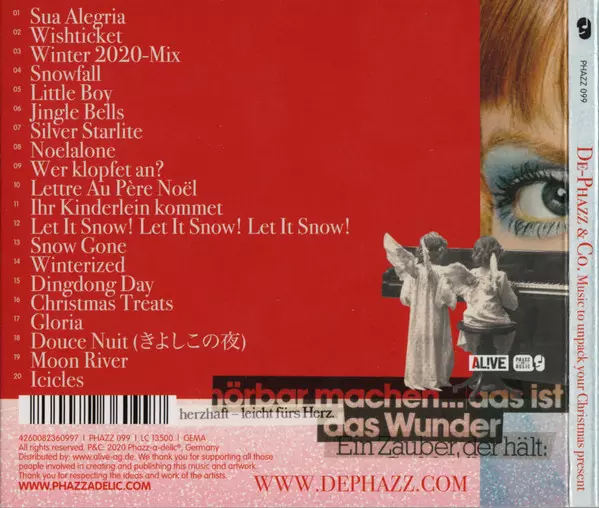 De-Phazz: Music To Unpack Your Christmas Present Wersja na CD w standardowe wydanie. Ta konkretna edycja została wydana w Niemcy w wydawnictwie Phazz-a-delic dnia 13. listopada 2020. Album sięga do gatunku Pop, Funk / Soul i Christmas.