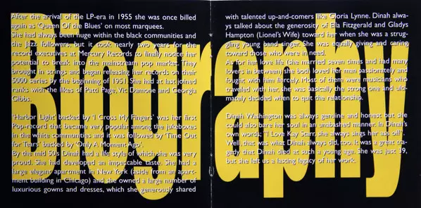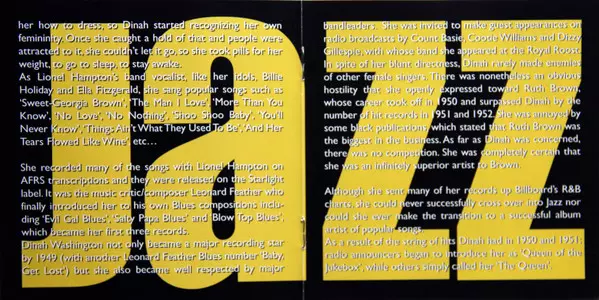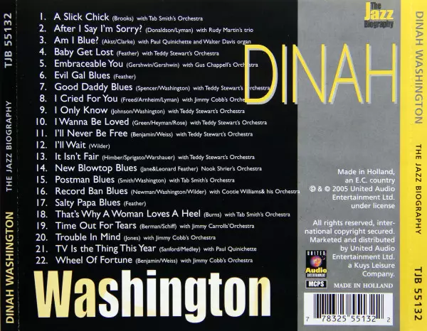 Dinah Washington: The Jazz Biography Wersja na CD w standardowe wydanie. Ta konkretna edycja została wydana w Holandia w wydawnictwie United Audio Entertainment dnia 30. czerwca 1990. Album można sklasyfikować jako gatunek Jazz.