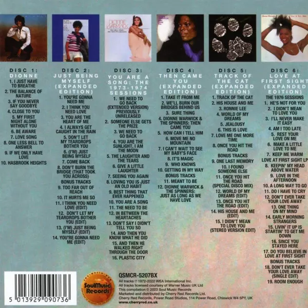 Dionne Warwick: Sure Thing: The Warner Bros. Recordings (1972-1977) Wersja na 6CD/Zestaw pudełkowy w zremasterowane wydanie. Ta konkretna edycja została wydana w WIELKA BRYTANIA w wydawnictwie SoulMusic Records dnia 10. stycznia 2025. Album sięga do gatunku Pop, Folk, World, & Country, Funk / Soul, Soul i Disco. Expanded Edition.