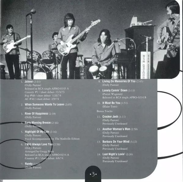 The album "Jolene" in its original form contained ten tracks, all of which were of very high quality. Two of them became number one country hits. The first of these was the title track "Jolene" which reached the top ten of the charts in 1976 and was covered by many including Olivia Newton-John, later The White Stripes and more recently BossHoss ...
