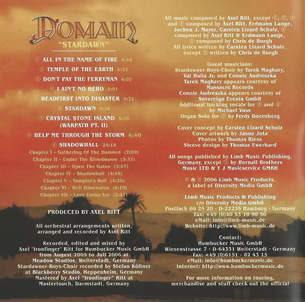 German hard rock / heavy metal band founded in 1985 as Kingdom . Band name was changed in 1988 to Domain.