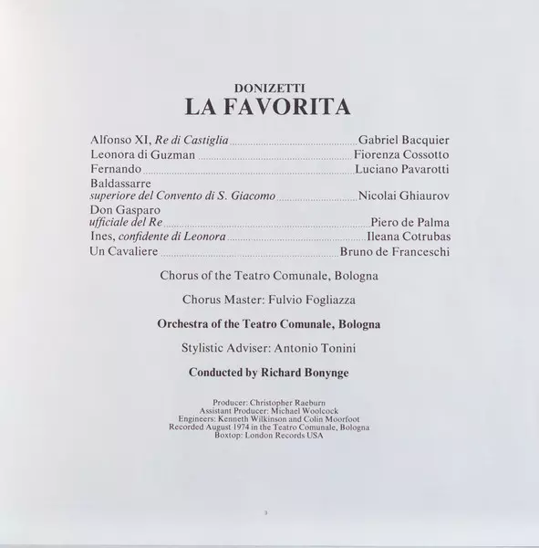 | Wykonawca | Luciano Pavarotti | Gaetano Donizetti | Nicolai Ghiaurov | Fiorenza Cossotto | Richard Bonynge | Ileana Cotrubas | Orchestra del Teatro Comunale di Bologna | Gabriel Bacquier |