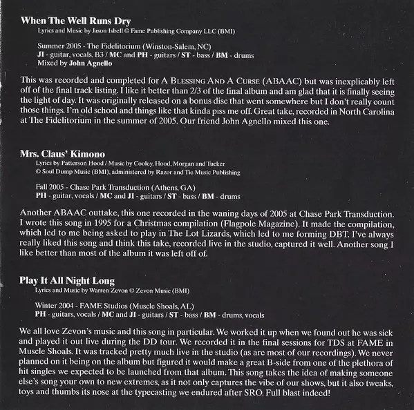 Bass Shonna Tucker | Drums Brad Morgan | Guitar Jason Isbell | Lyrics By, Music By, Guitar, Vocals Mike Cooley | Music By Matt Lane (3), Rob Malone (2) | Music By, Lead Guitar, Harmony Vocals Patterson Hood