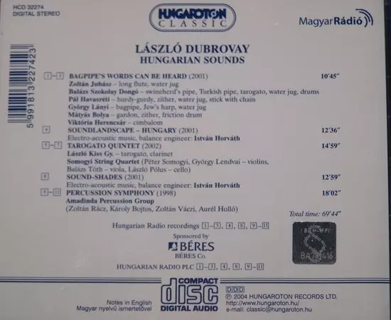 Tytuł | Hungarian Sounds: Bagpipe's Words Can Be Heard / Soundlandscape Hungary / Tárogato Quintet / Sound-Shades / Percussion Symphony |