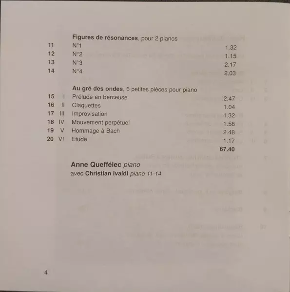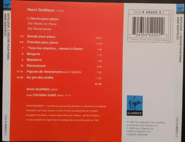 | Wykonawca | Anne Queffélec | Henri Dutilleux |