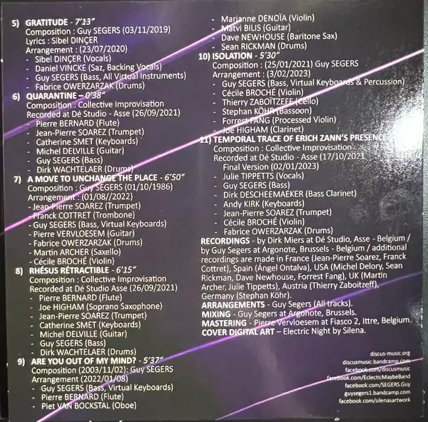 Arranged By Guy Segers | Bass Guy Segers | Composed By Eclectic Maybe Band | Drums Dirk Wachtelaer | Electric Guitar Michel Delville | Flute Pierre Bernard | Keyboards Catherine Smet | Soprano Saxophone Joe Higham | Trumpet Jean Pierre Soarez