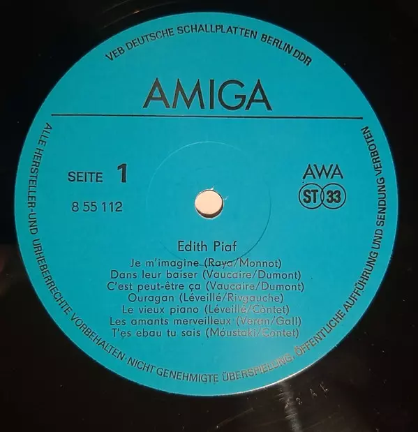 | Więcej informacji | Light Blue Label Vinyl (large centre numbers) AMIGA GDR press |