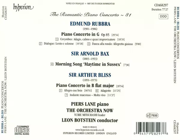 Wykonawca | Arnold Bax | Edmund Rubbra | Leon Botstein | Arthur Bliss | Piers Lane | NOW Orchestra |