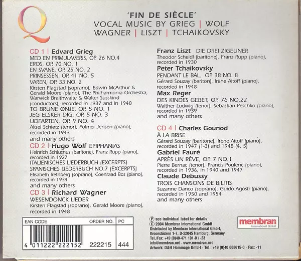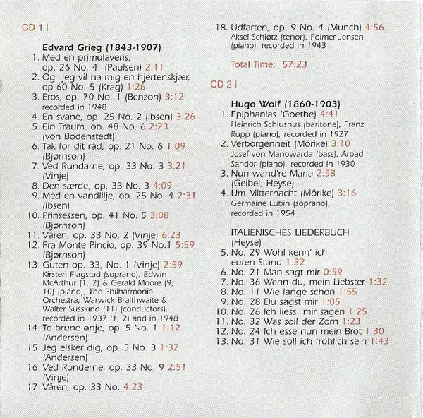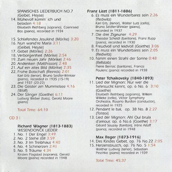 | Wykonawca | Pyotr Ilyich Tchaikovsky | Edvard Grieg | Richard Wagner | Franz Liszt | Hugo Wolf |