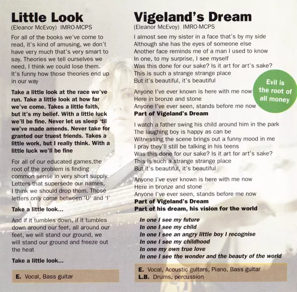 Eleanor McEvoy: Out There Wersja na SACD w standardowe wydanie. Ta konkretna edycja została wydana w Irlandia w wydawnictwie Moscodisc dnia 24. października 2006. Album sięga do gatunku Rock, Folk, World, & Country, Indie Rock i Folk Rock.