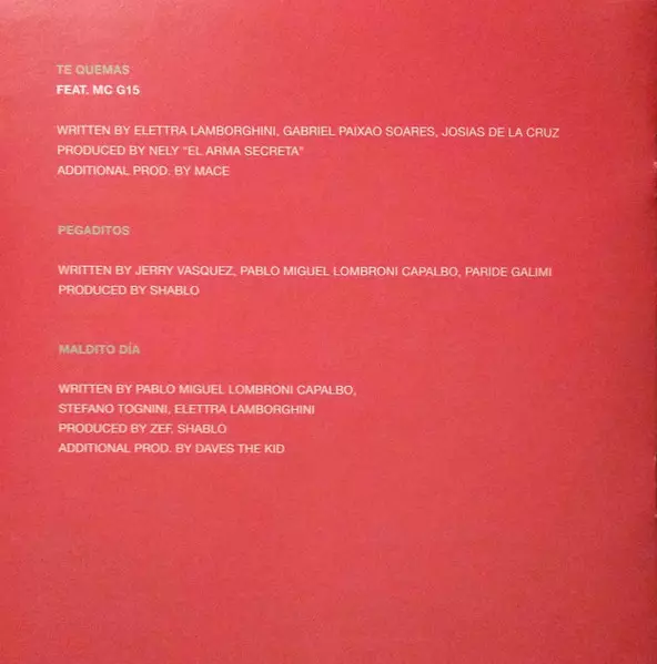 | 8 | Elettra Lamborghini: Maldito Día | 3:23 min | |