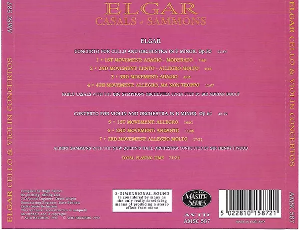 | Wykonawca | Sir Edward Elgar | Pablo Casals | Albert Sammons |