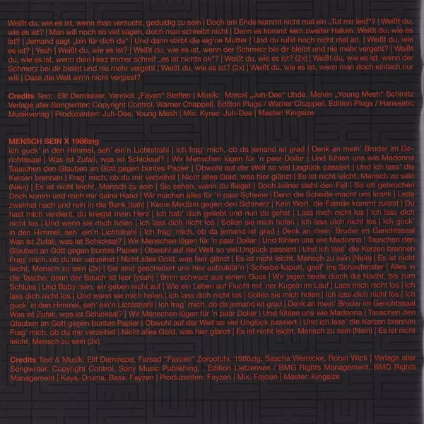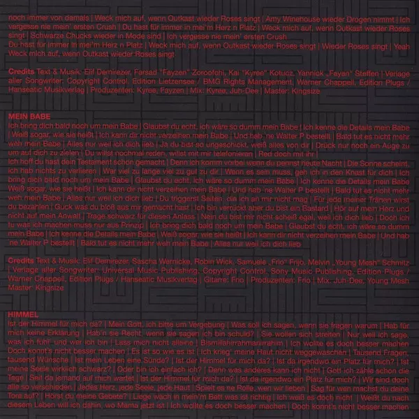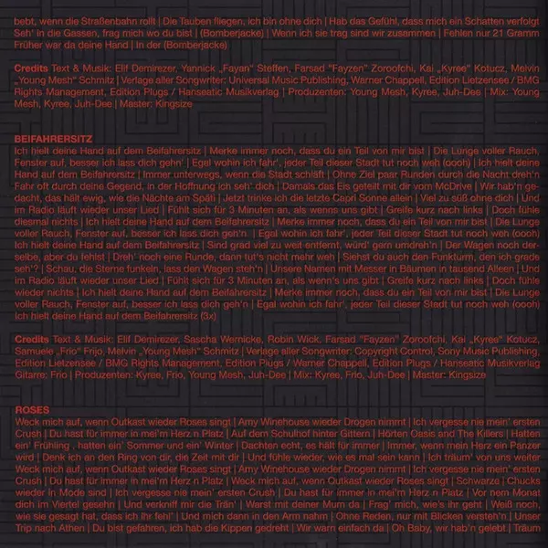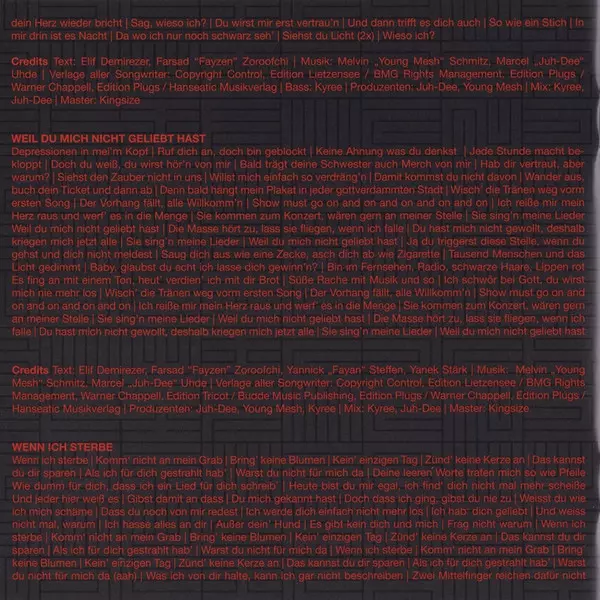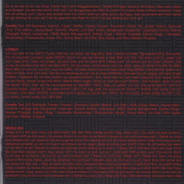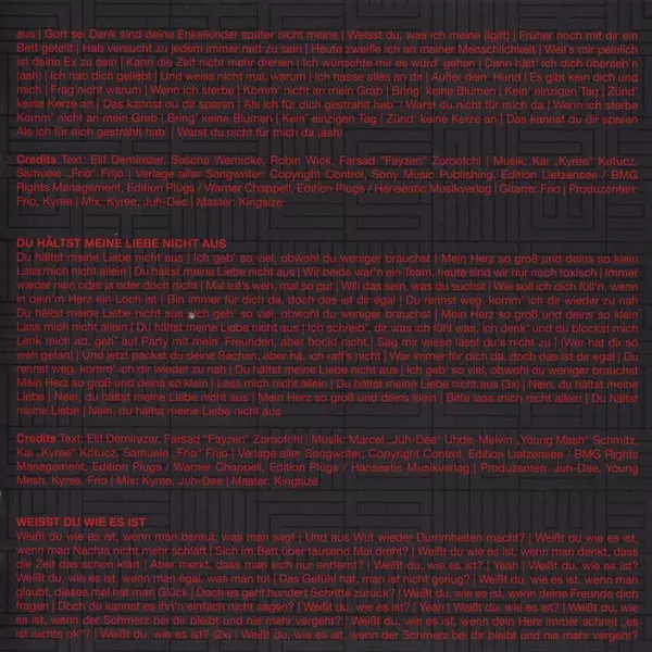 Lyrics By Elif Demirezer, Farsad Zoroofchi, Yanek Stärk, Yannick Steffen | Mastered By Kingsize (6) | Music By Marcel Uhde, Melvin Schmitz | Producer Mesh (21) | Producer, Mixed By Juh-Dee, Kyree