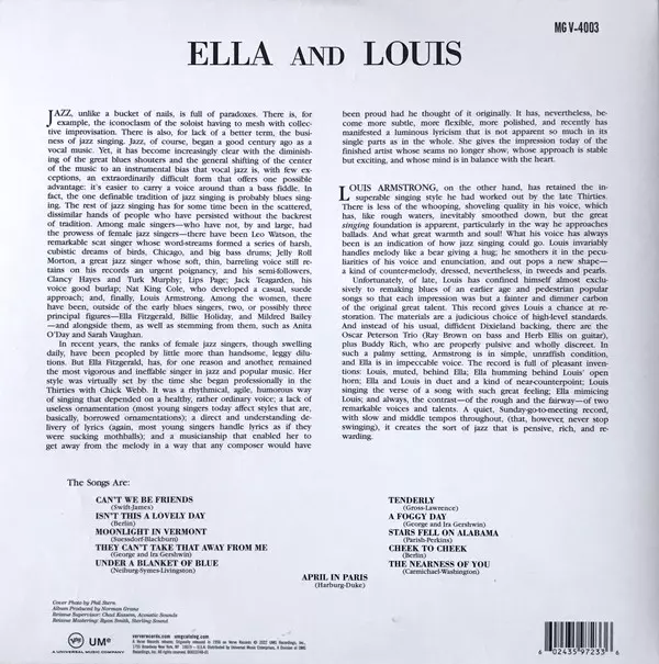 A new release of a collaborative album by two legends - Ella Fitzgerald and Lousie Armstrong mastered from original analog tapes
