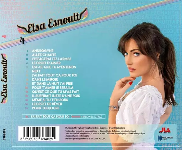 Elsa Esnoult: 4 Wersja na CD w standardowe wydanie. Ta konkretna edycja została wydana w Francja w wydawnictwie JLA Disc we współpracy z Wagram Music dnia 23. sierpnia 2019. Album sięga do gatunku Pop i Europop.