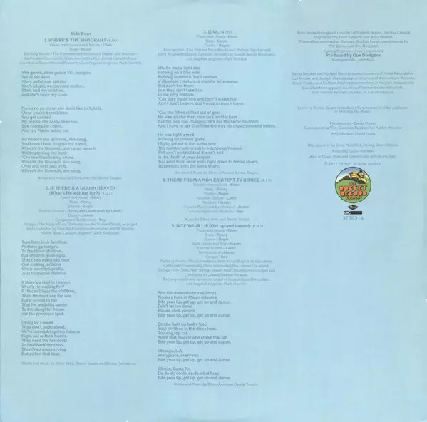 Backing Vocals The Cornerstone Institutional Baptist And Southern California Choir | Bass Kenny Passarelli | Directed By [Backing Vocals] Rev. James Cleveland | Engineer Mark Howlett | Piano, Harmonium, Vocals Elton John | Words By, Music By Elton John & Bernie Taupin
