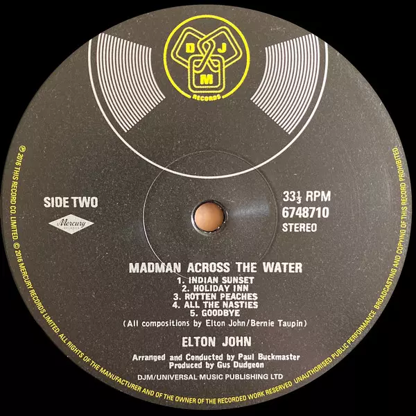 Elton John "Madman Across The Water" is a 1971 album that features some of his most popular songs, such as "Tiny Dancer" and "Levon." The album was a critical and commercial success and helped John establish himself as a major figure in the music industry.