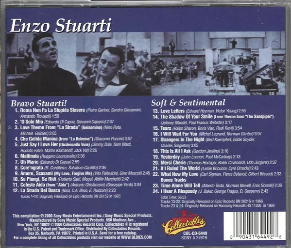 Enzo Stuarti: Bravo Stuarti! / Soft & Sentimental Wersja na CD w standardowe wydanie. Ta konkretna edycja została wydana w USA w wydawnictwie Collectables we współpracy z Sony Music Special Products dnia 16. września 2016. Album sięga do gatunku Pop i Wokal.