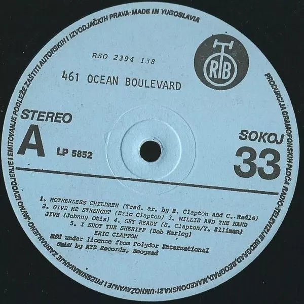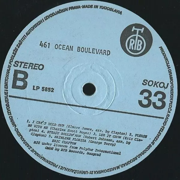 Eric Clapton: 461 Ocean Boulevard Wersja na winylu LP w standardowe wydanie. Ta konkretna edycja została wydana w Jugosławia w wydawnictwie PGP RTB we współpracy z RSO roku 1980.
