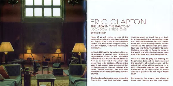 Eric Clapton: The Lady In The Balcony: Lockdown Sessions Wersja na CD w ograniczone wydanie. Ta konkretna edycja została wydana w Europa w wydawnictwie Mercury Studios (5) we współpracy z Bushbranch Productions i Universal Music Group dnia 16. września 2022.