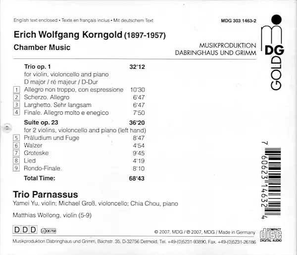 | Wykonawca | Erich Wolfgang Korngold | Trio Parnassus | Matthias Wollong |