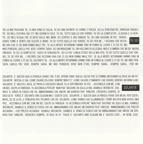 Drum Programming, Synth [Bass] Michele Canova Iorfida | Keyboards Claudio Guidetti, Michele Canova Iorfida | Lyrics By Adelio Cogliati, Eros Ramazzotti | Music By Claudio Guidetti, Eros Ramazzotti | Piano, Acoustic Guitar, Electric Guitar, Guitar [Ebow] Claudio Guidetti