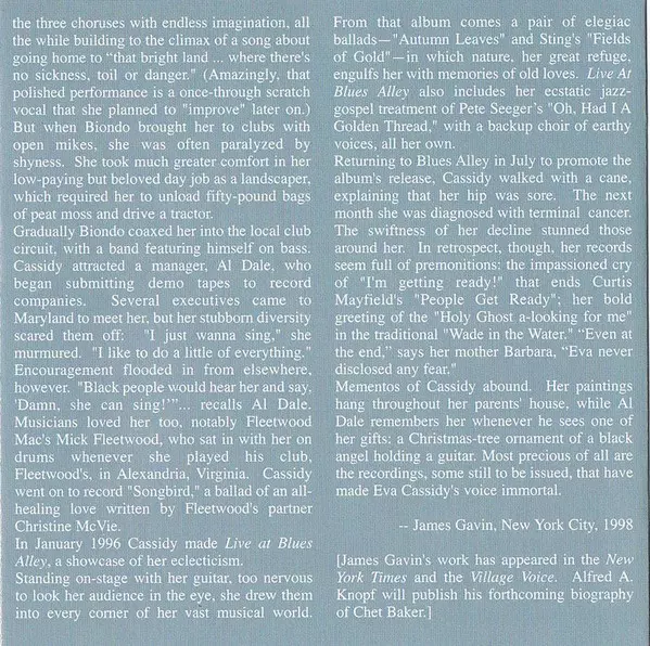 Bass Chris Biondo | Violin Dan Cassidy | Vocals, Guitar, Keyboards Eva Cassidy | Written-By Diane Scanlon, Eve Nelson