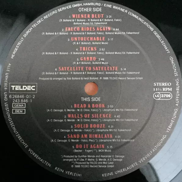 Falco Wiener Blut from 1988 is a mixture of rock and pop. The album was commercially successful and reached number one in Austria and Germany. The title track "Wiener Blut" became a number one hit in Austria. Other singles from the album, "Rock Me Amadeus" and "Jeanny", were also successful. "Rock Me Amadeus" reached number one in the United States and number two in the UK. "Jeanny" reached number one in Austria and number three in Germany.
