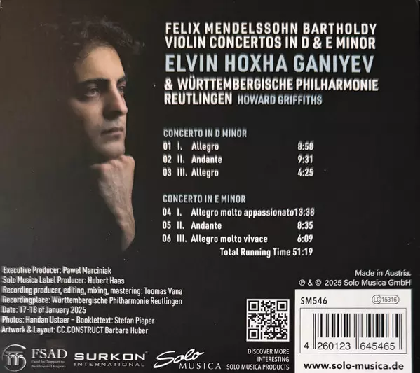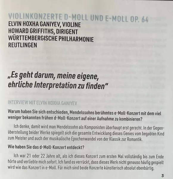 | Wykonawca | Felix Mendelssohn-Bartholdy | Württembergische Philharmonie Reutlingen | Howard Griffiths | Elvin Hoxha Ganiyev |