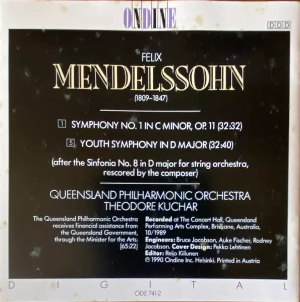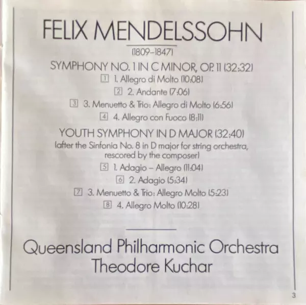 | Wykonawca | Felix Mendelssohn-Bartholdy | Theodore Kuchar | Queensland Philharmonic Orchestra |