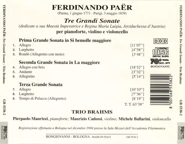 | Wykonawca | Ferdinando Paer | Trio Brahms |