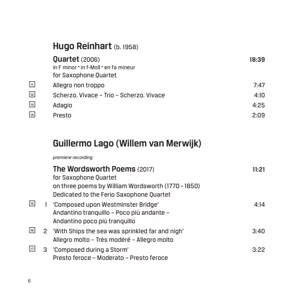 | Wykonawca | Ferio Saxophone Quartet |