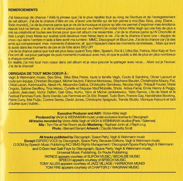 Backing Vocals Alex Chonville, Sébastien Lunghi | Guitar Sébastien Lunghi | Percussion, Berimbau Adriano Tenório DD | Programmed By, Percussion, Other [Dub] Victor Vagh | Remix, Programmed By [Addtional] Tom Fire | Written-By Flavia Coelho, Victor Vagh