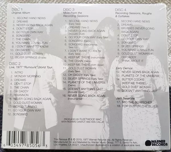 Fleetwood Mac: Rumours DLX Wersja na 4CD w zremasterowane deluxe wydanie. Ta konkretna edycja została wydana w Europa, USA i Kanada w wydawnictwie Warner Records dnia 8. listopada 2019.