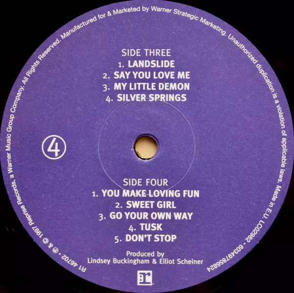 Fleetwood Mac: The Dance Wersja na winylu 2LP w standardowe wydanie. Ta konkretna edycja została wydana w Europa w wydawnictwie Reprise Records dnia 12. października 2018.