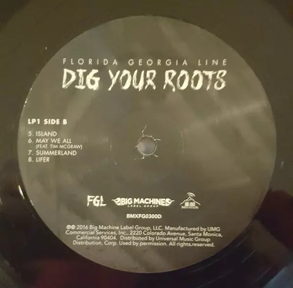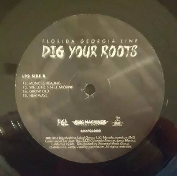 Florida Georgia Line: Dig Your Roots Wersja na winylu 2LP w standardowe wydanie. Ta konkretna edycja została wydana w USA w wydawnictwie Big Machine Label Group we współpracy z Big Loud Mountain dnia 28. października 2016. Album sięga do gatunku Folk, World, & Country i Country.