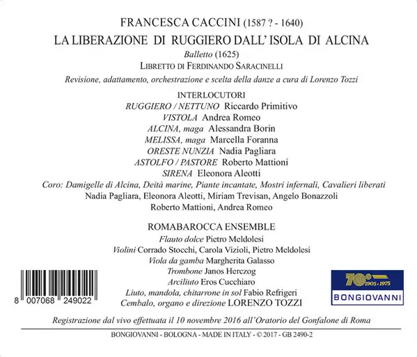 Wykonawca | Francesca Caccini | Romabarocca Ensemble | Lorenzo Tozzi | Alessandra Borin | Riccardo Primitivo | Marcella Foranna |