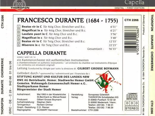 | Wykonawca | Francesco Durante | Capella Durante | Gilbert Große Boymann |