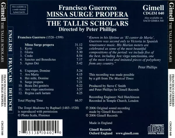 Wykonawca | Francisco Guerrero | The Tallis Scholars | Peter Phillips |