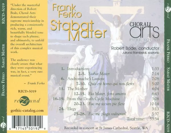 | Wykonawca | Frank Ferko | Choral Arts Northwest | Robert Bode | Juliana Rambaldi |
