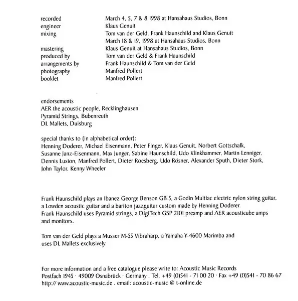 | Wykonawca | Frank Haunschild | Tom van der Geld |
