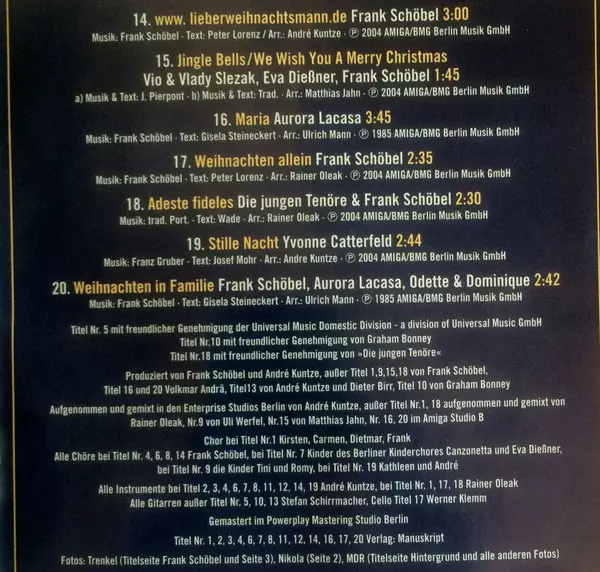 | 11 | Frank Schöbel, Kinderchor Canzonetta: Warten Auf Den Weihnachtsmann | 2:12 min | |