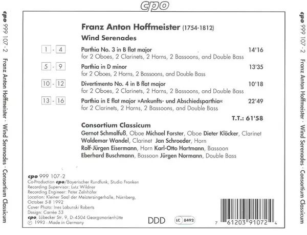 Wykonawca | Franz Anton Hoffmeister | Consortium Classicum |