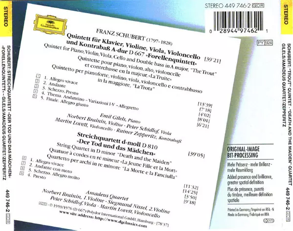 | Wykonawca | Franz Schubert | Emil Gilels | Amadeus-Quartett | Rainer Zepperitz |