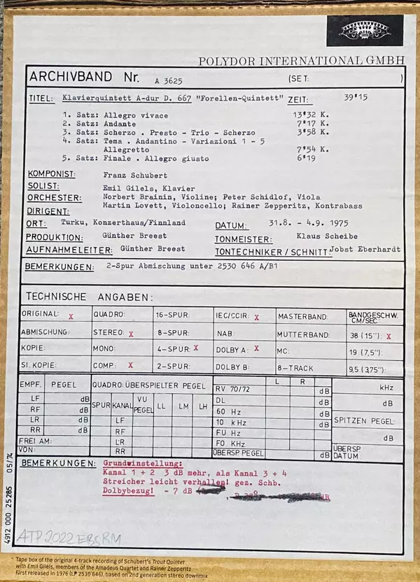 Wykonawca | Franz Schubert | Emil Gilels | Amadeus-Quartett | Rainer Zepperitz |