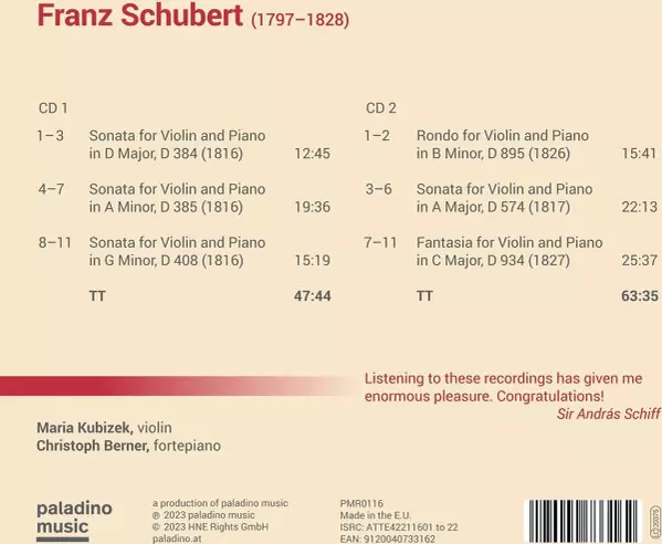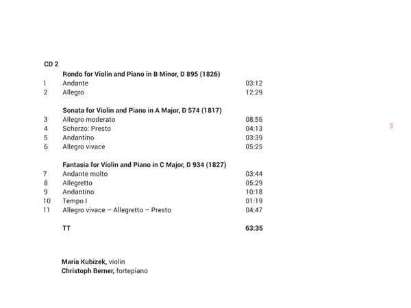 | Sonata For Violin And Piano In A Minor, D 385 (1816) | 19:36 min | |