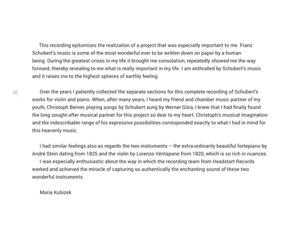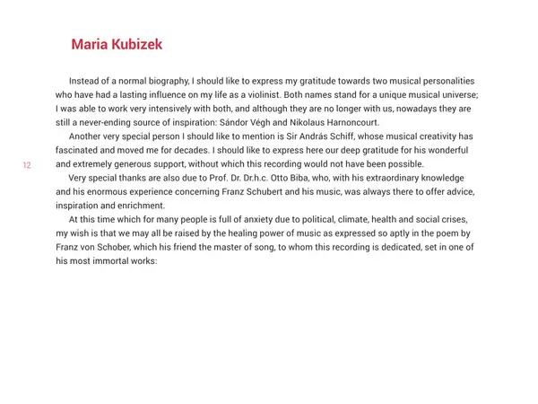 | Wykonawca | Franz Schubert | Christoph Berner | Maria Kubizek |