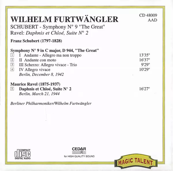 Wykonawca | Franz Schubert | Maurice Ravel | Wilhelm Furtwängler |